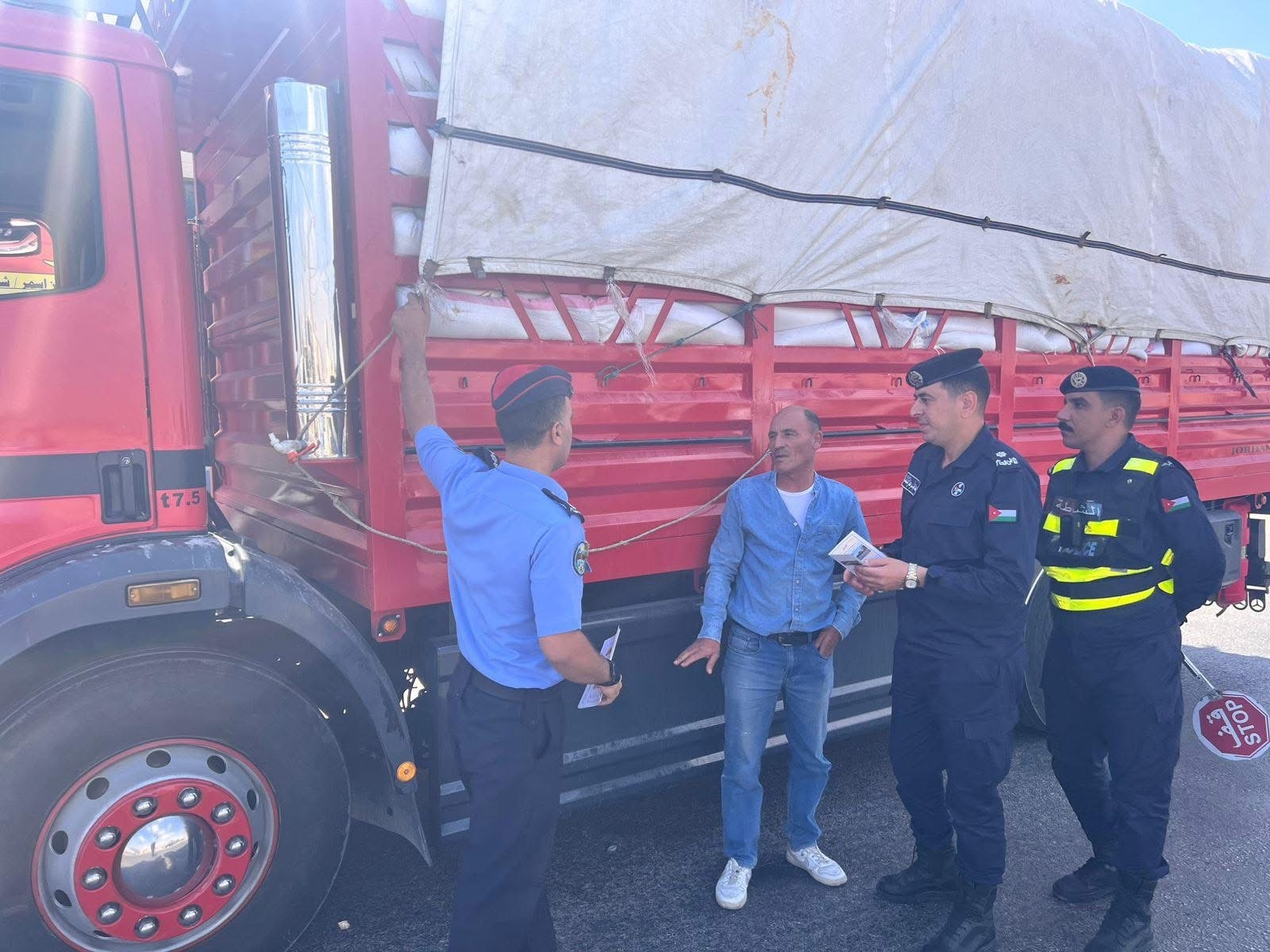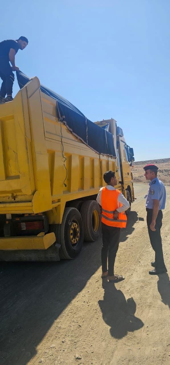 نفذت فرق ميدانية من مديرية الأمن العام، الشرطة المجتمعية، والإدارة الملكية لحماية البيئة، جولات تثقيفية استهدفت إرشاد سائقي مركبات الشحن حول أهمية الالتزام بالضوابط والمعايير المعتمدة في تحميل الحمولات وتثبيتها بإحكام أثناء المسير، وبما يجسد قيم المسؤولية المجتمعية والشراكة لتعزيز الالتزام بالقوانين.