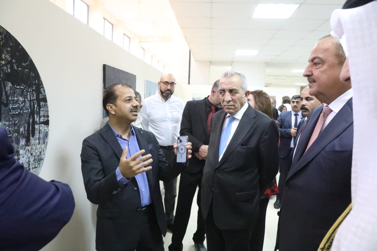 وحضر افتتاح المعرض الذي أقيم في جاليري كلية الفنون والتصميم بالجامعة الأردنية، رئيس الجامعة الدكتور نذير عبيدات، وضيف شرف مهرجان جرش للثقافة والفنون الشيخ راشد بن خليفة آل خليفة، والسفير الكويتي في عمان حمد المري.
