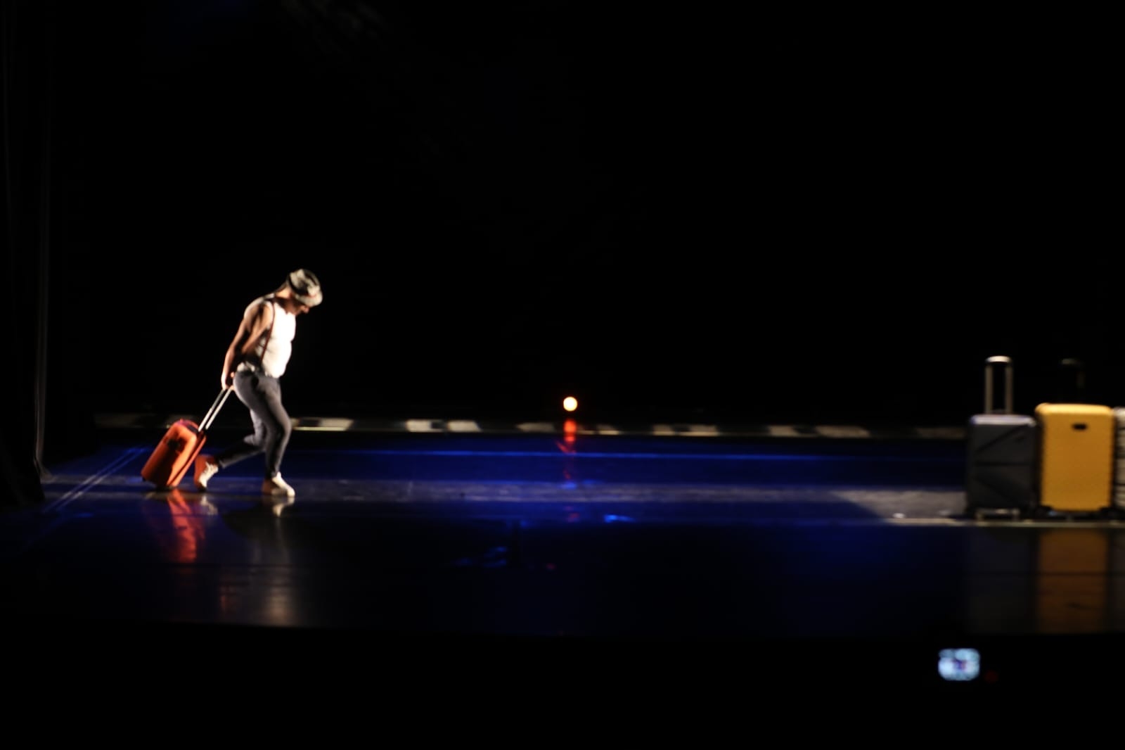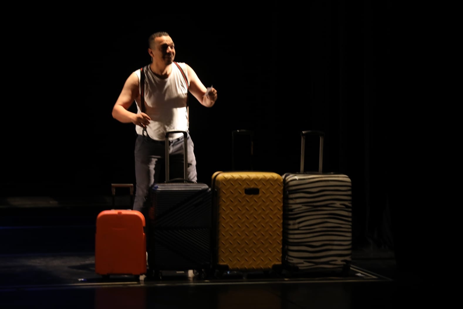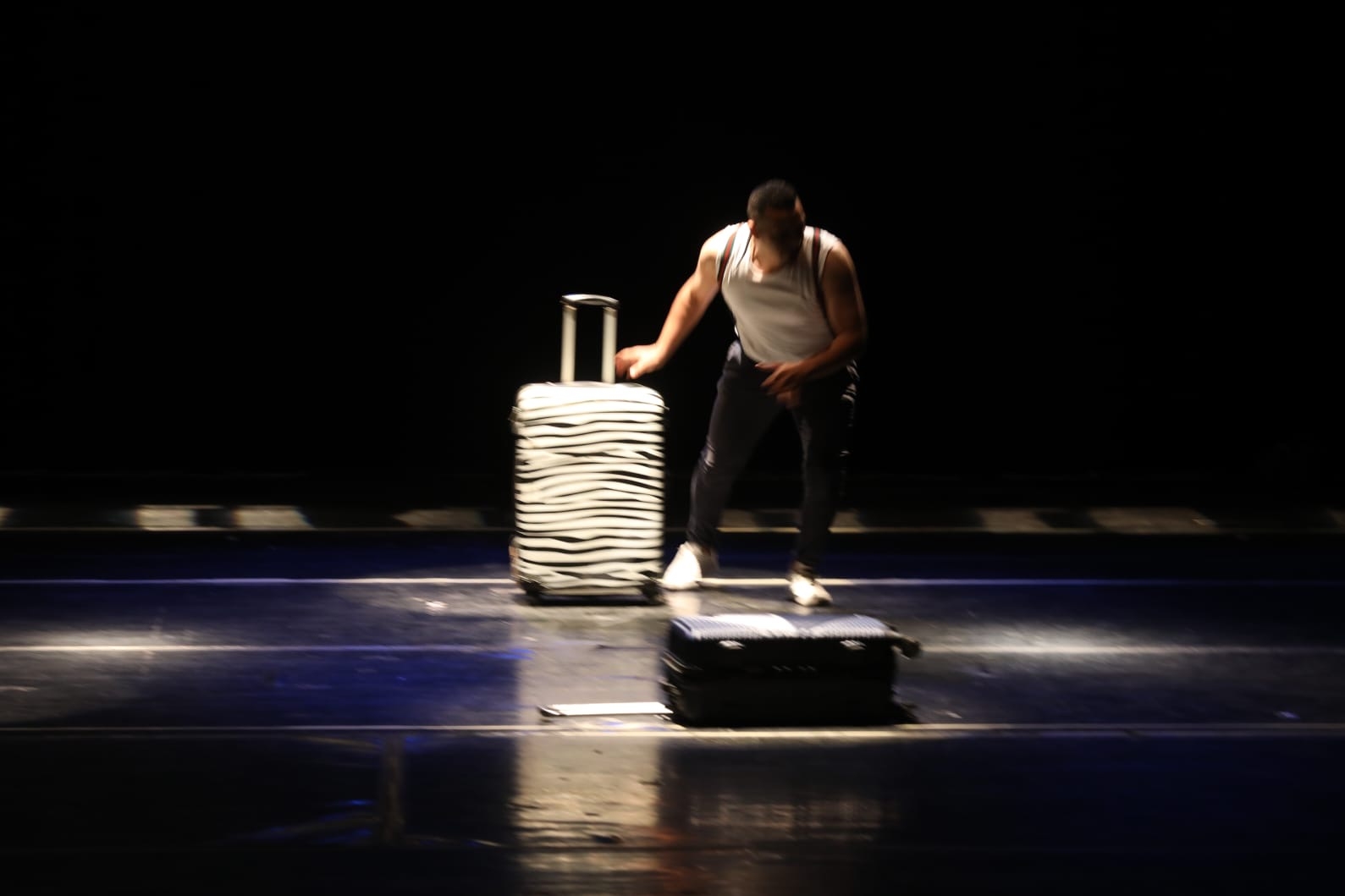 وفي إطار مونودرامي متماسك، يقف "الممثل – المسافر" ليحمل حقائبه المادية والرمزية، باحثًا عن إجابة لسؤال وجودي يتردد طيلة العرض: "إلى أين؟". فالمسرحية لا تكتفي بعرض مشهد فردي عن الرحيل، بل تحوّله إلى سؤال جماعي يمسّ كل من اضطر أن يغادر، أن يهاجر، أن يُهجّر، أو أن يرحل مجبرًا من وطن بات غير قابل للسكن، بفعل الحروب والدمار والنكبات المتتالية، وحتى الإحتلال في العالم العربي.