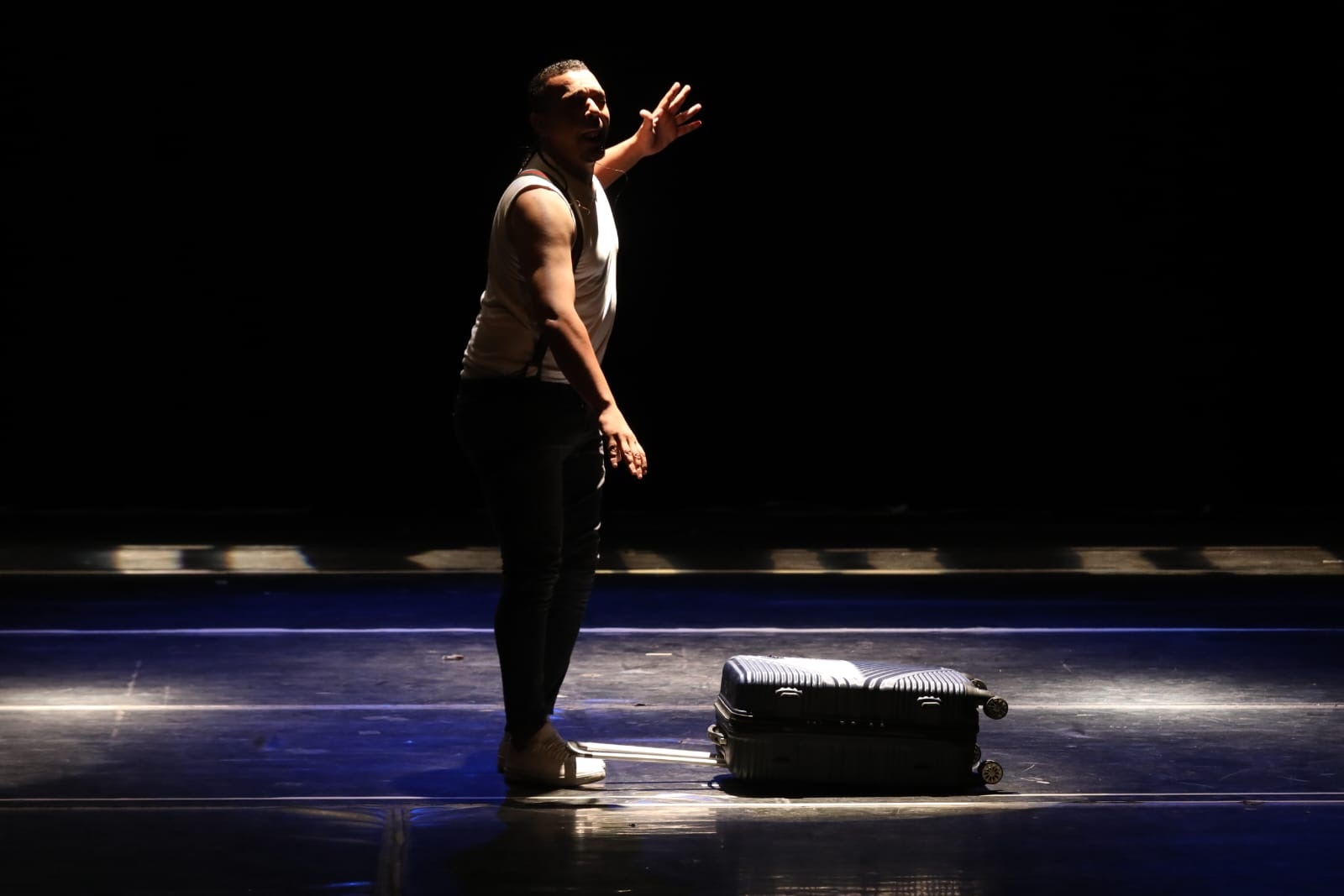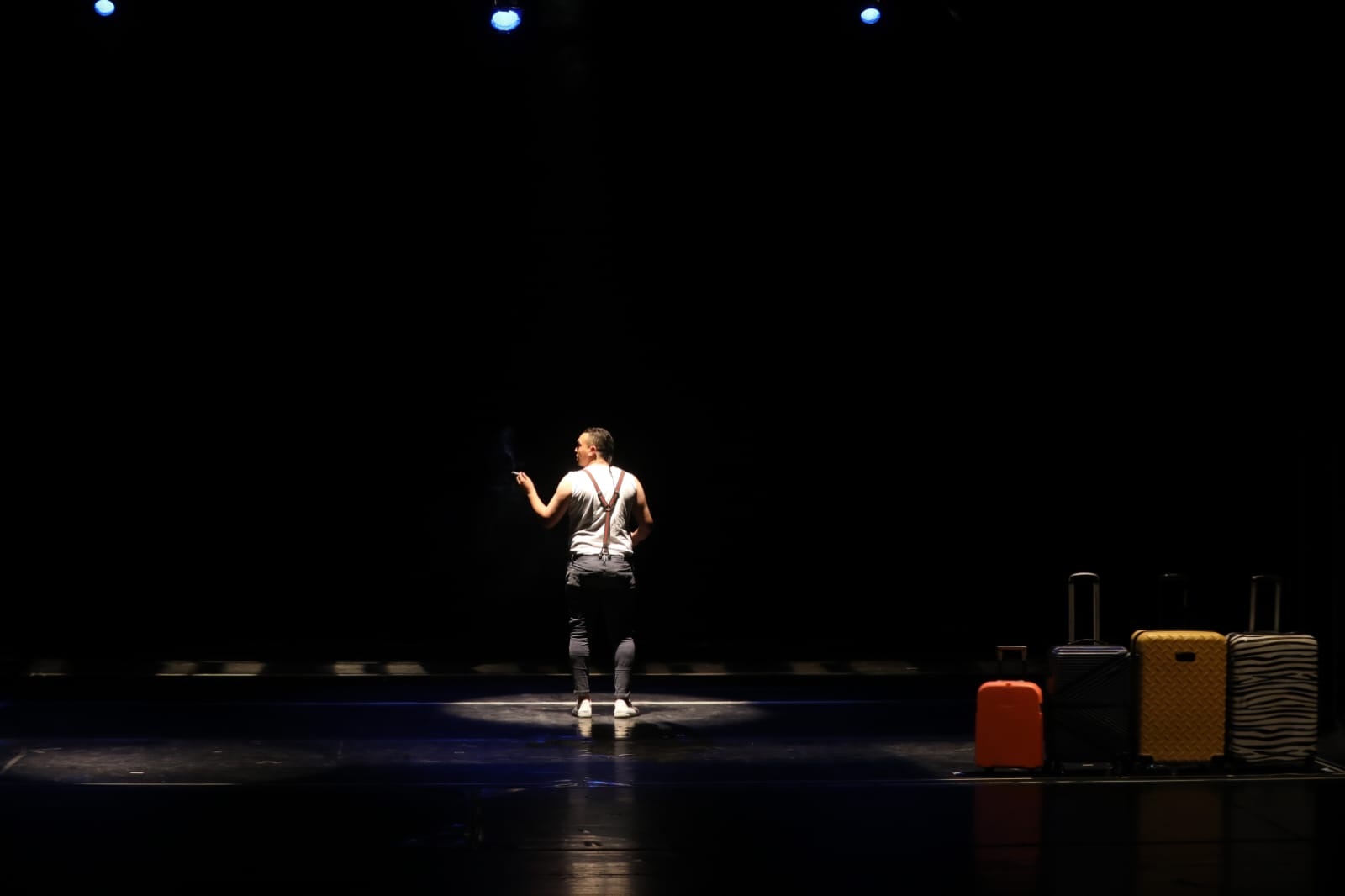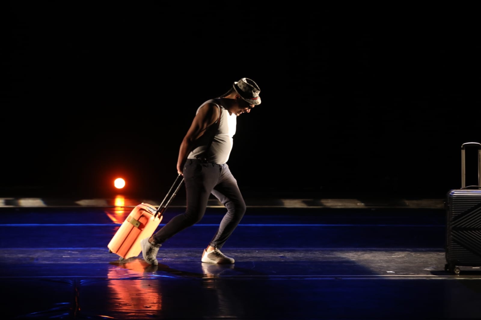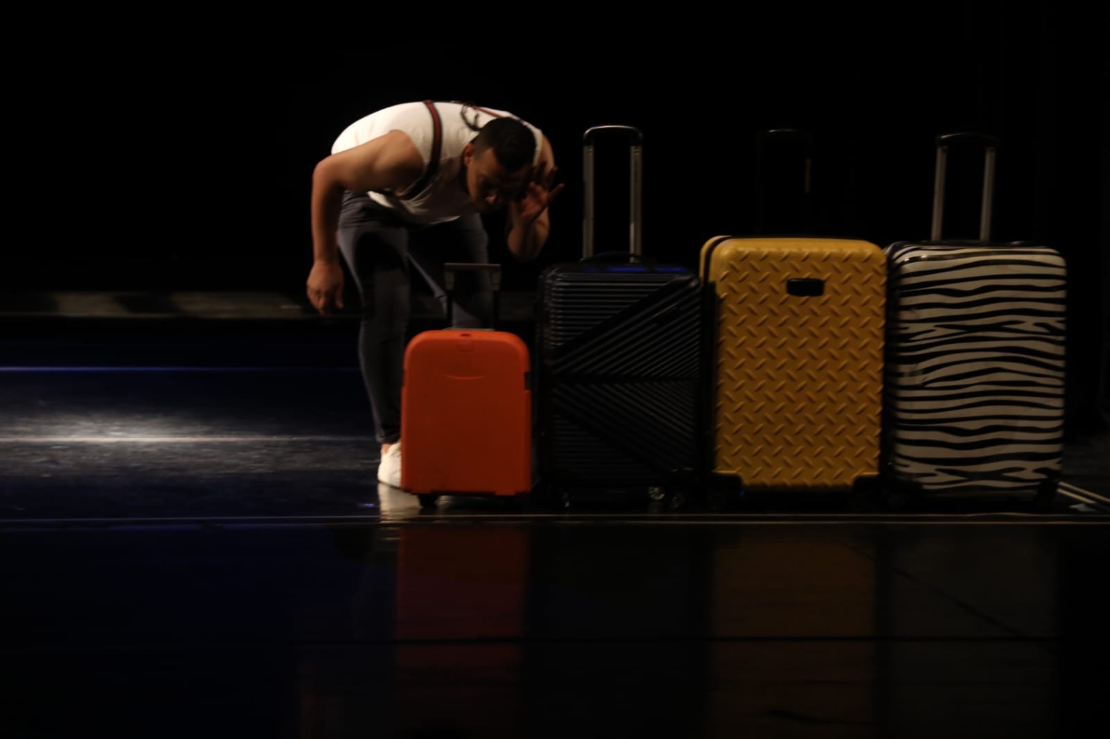 وفي إطار مونودرامي متماسك، يقف "الممثل – المسافر" ليحمل حقائبه المادية والرمزية، باحثًا عن إجابة لسؤال وجودي يتردد طيلة العرض: "إلى أين؟". فالمسرحية لا تكتفي بعرض مشهد فردي عن الرحيل، بل تحوّله إلى سؤال جماعي يمسّ كل من اضطر أن يغادر، أن يهاجر، أن يُهجّر، أو أن يرحل مجبرًا من وطن بات غير قابل للسكن، بفعل الحروب والدمار والنكبات المتتالية، وحتى الإحتلال في العالم العربي.