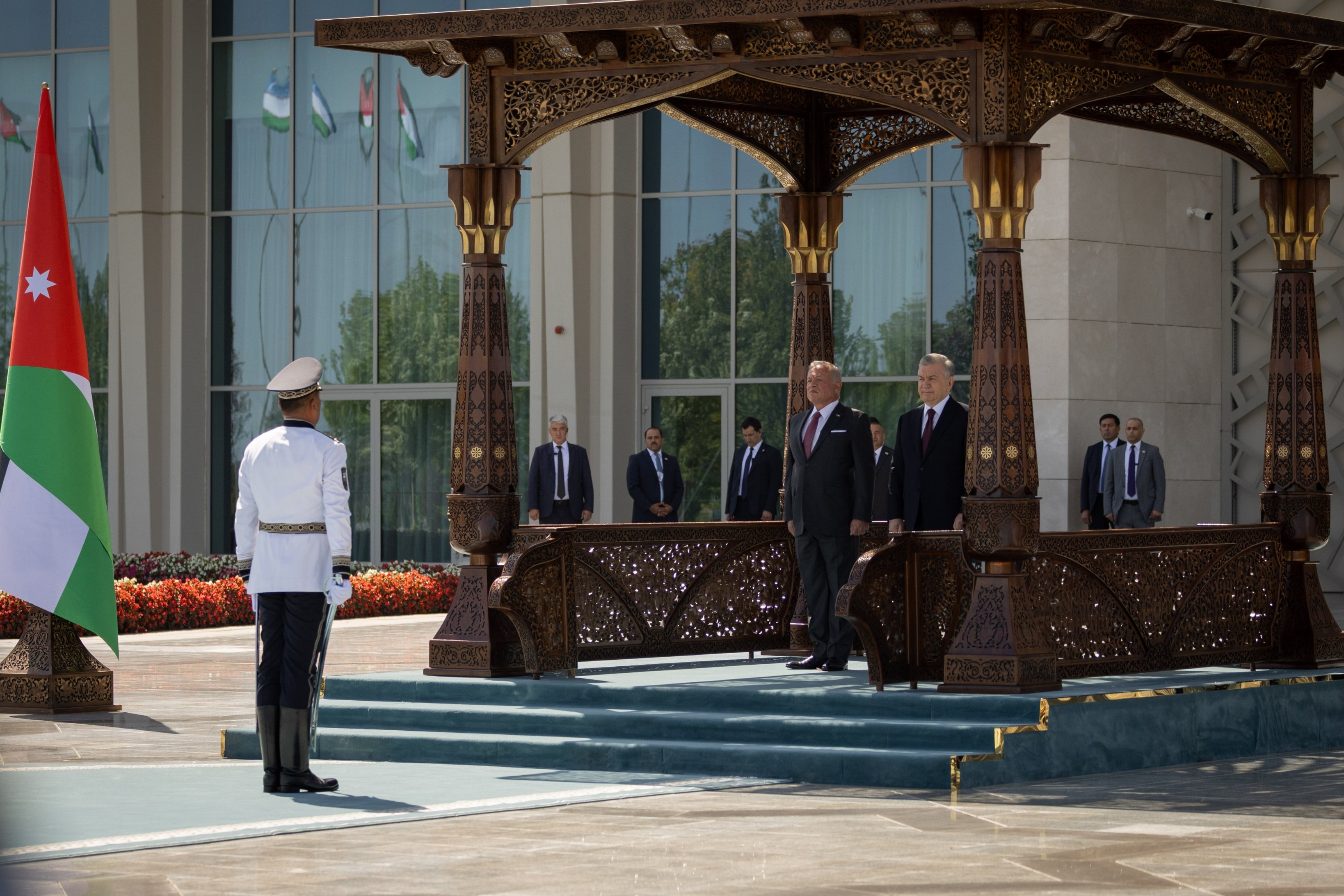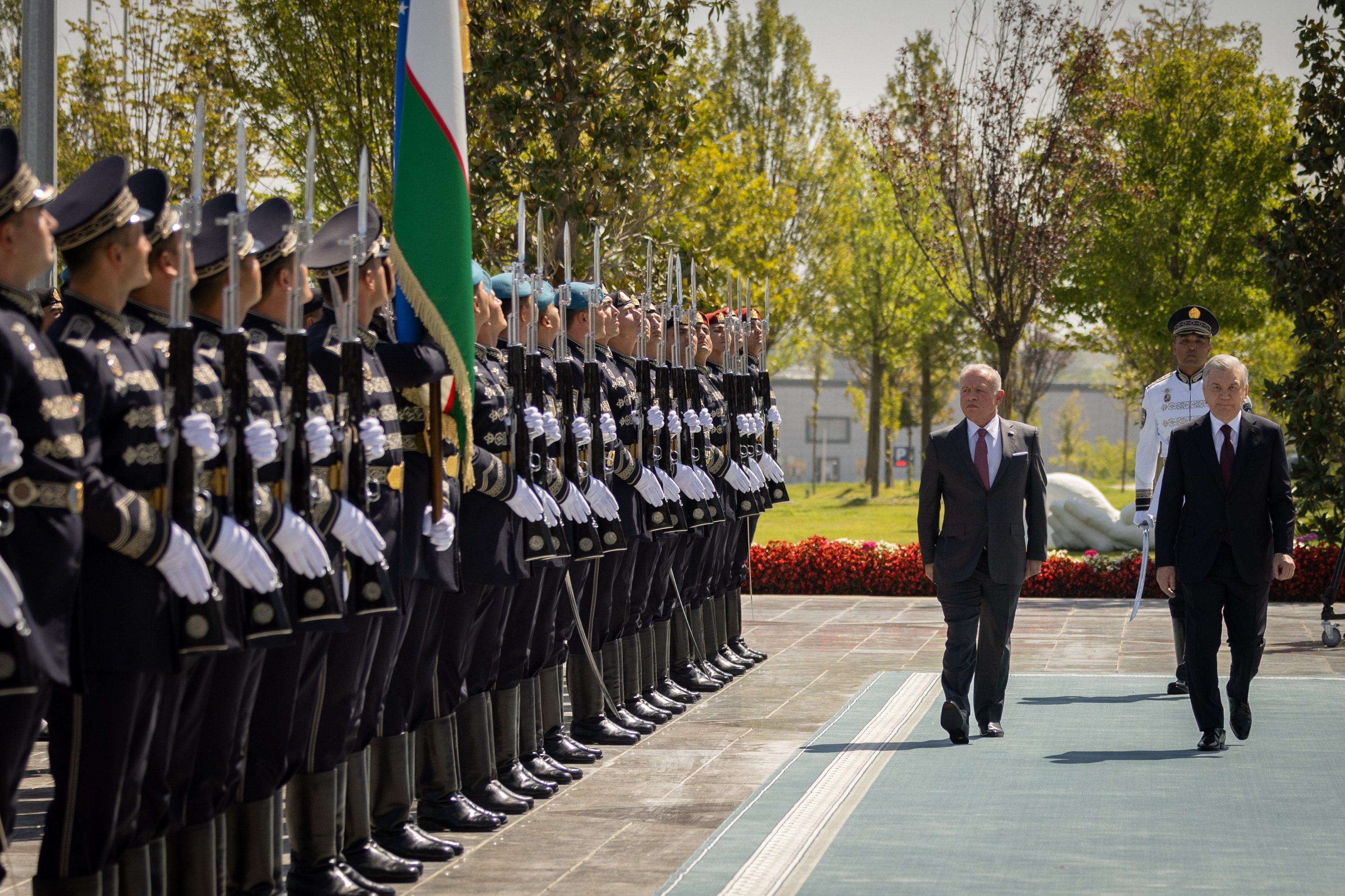 عقد جلالة الملك عبدالله الثاني ورئيس جمهورية أوزبكستان شوكت ميرضيائيف مباحثات في مدينة سمرقند.وكان جلالة الملك قد وصل إلى مركز المؤتمرات في سمرقند، واستقبل رئيس جمهورية أوزبكستان جلالته لدى وصوله مركز المؤتمرات.